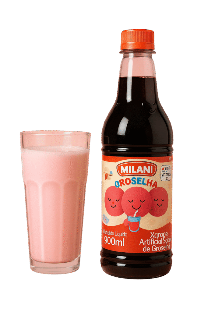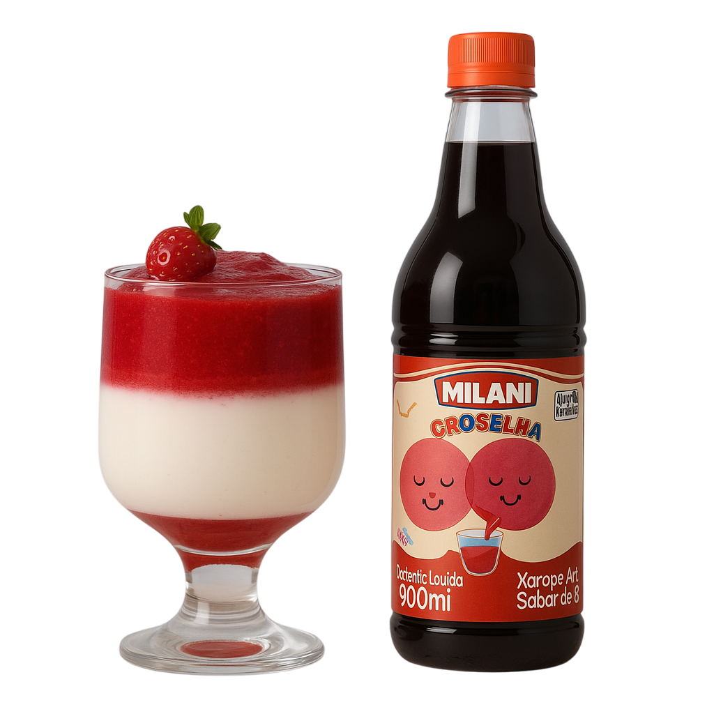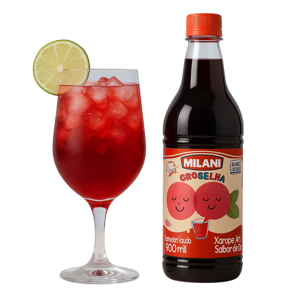 A Groselha Milani é um xarope artificial sabor groselha, conhecido por seu sabor doce e marcante, ideal para refrescos, drinks, sobremesas e receitas culinárias.